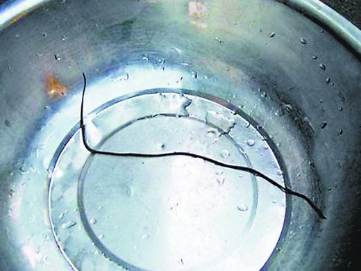 酷似铁丝的铁线虫。(资料图片) “啷个水里面有虫在动?”前天,家住渝北的何先生发现盆内竟然有一条约10厘米长的小虫,更让他惶恐不安的是,这带虫的水就是从他家热水器的喷头里流出来的。 水里有条黑东西 不是头发是条虫 何先生住在渝北千年禧小区21楼,当天晚上,家人在洗澡时,顺道用热水器喷头接了一盆水,放在一边,方便不时之需。第二天上午,准备上班的何先生来到浴室,正准备倒水出来,却看到了水中竟然有条黑色的东西在动! 最初,何先生还以为是头发,就用手去捻,结果发现像头发的黑东西竟是一条虫。虫很细,呈黑色,约有10厘米长。那这些虫子是从何而来呢? 因为不知道虫子是从水管中来,还是之后掉进水里,所以,一家人为了安全和健康,都不敢再用家里的水,为了一探究竟,何先生通知了水厂。 何先生一边等待工作人员,一边上网查询小黑虫的信息。通过网上查询发现,这条虫应该是成虫后就爱生活在海水或淡水中的铁线虫。让何先生后怕的是,喝下铁线虫后有一定几率感染铁线虫病,而这种病会引发尿道感染发炎。 自来水检测没问题 铁线虫可能来自花洒 昨天,重庆中法供水有限公司实验室经理汤雯来到何先生家,经过一系列专业仪器的检测后断定,片区供水管网和何先生家的自来水水质是正常的,并初步判定盆内的是一条铁线虫。 汤雯表示,水厂会在水中添加一定量的氯来杀菌除微生物,从而对自来水消毒,因此,寄生虫无法在自来水中生存。而何先生家的水中出现铁线虫,极有可能是热水器的淋浴花洒,因为长久没有清洗,导致细菌和杂质吸附在水管中,滋生而成。 汤雯说,水作为市民日常生活的必需品,在平时的用水过程中,也有一些小常识,可以防止细菌和虫卵滋长。除了定期清洗花洒外,连接热水器的管道,特别是塑料管道内壁容易存在大量的水垢,因此每隔几年,最好对管道进行一次更换。 专家建议> 最好使用金属质地的花洒 《生命时报》也曾对潜伏在花洒中的细菌进行过报道。报道称,来自美国科罗拉多大学的研究人员对5个州的45个花洒进行了取样化验。结果发现,几乎每个花洒中都藏匿着数万个细菌,特别是塑胶质地的淋浴花洒,其中三成被检测出含鸟分枝杆菌,极易导致肺病。 研究人员指出,这种细菌在城市供水系统中十分常见,但一般饮用水都会高温加热,能杀死这些致病菌,而花洒上的这种细菌量是自来水的100倍,人们在洗澡时,花洒喷出的水柱很容易被吸入体内,引发感染。 大坪医院急诊科教授姚元章表示,鸟分枝杆菌感染后可侵害肺、骨髓和淋巴结等器官,症状包括疲劳、持续干咳、呼吸短促、体虚、感觉全身难受等。免疫系统正常的健康人无需担心,但像老人、孩子、孕妇等抵抗力弱的人群,以及身患疾病的人要引起注意。 重医附二院呼吸内科教授王导新建议市民,最好用全金属质地的花洒,这样让细菌很难找到藏匿之处;使用前先通热水流3分钟,以起到杀菌的作用;尽量不要让其直接对着脸冲洗,以免细菌被吸入体内。 市民态度> 九成受访者认为花洒被堵才需清洗 也许很多人并不知道几乎天天通水的淋浴花洒,竟然会藏匿着如此多的细菌。昨天,晨报记者进入社区,随机采访了28位居民,其中,9成受访者认为,淋浴花洒要堵住后才需要清洗。 家住天宝路社区的吴碧梅表示,自家淋浴花洒的寿命已有7年,一次都没有清洗过,她认为,“花洒又没有堵住,清洗干啥子哟?”受访的28位市民中,有26人跟吴碧梅是一样的想法。 其中,只有9位受访者坦言清洗过淋浴花洒。但清洗的方法却五花八门,刷子刷、清水冲、白醋泡,甚至还有用洁厕灵洗的。清洗过的人中,只有两个人知道花洒应该经常清洗,其他人之所以清洗则都是因为花洒的出水孔水流变小,或者是堵住了。 家住天兴路社区的吴亚芳因为女儿是医生,经常回家告诉她这方面的知识,所以是难得知道花洒需要定期清洗的其中一人。吴亚芳说,自家的淋浴花洒已经使用6年时间,她每隔半年左右,就会用白醋把花洒泡一晚上,来一次大扫除。