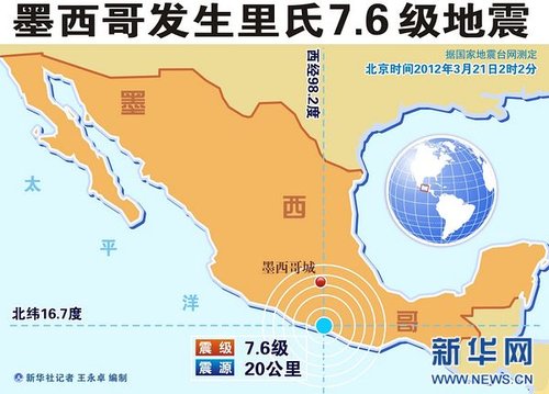 2012年3月21日表:墨西哥发生里氏7.6级地震 新华社记者 王永卓 编制